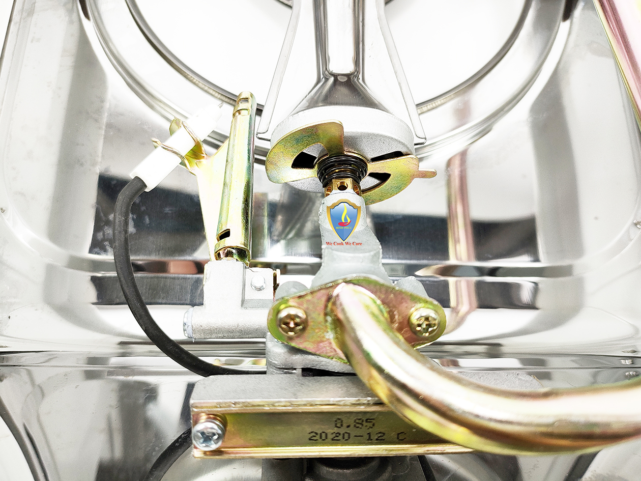 Bếp du lịch sử dụng van ngắt gas an toàn tự động Inline Cut. Bếp sử dụng hệ thống đầu đốt theo tiêu chuẩn JIA (Nhật Bản), kết hợp vòng chắn gió, giúp ngọn lửa