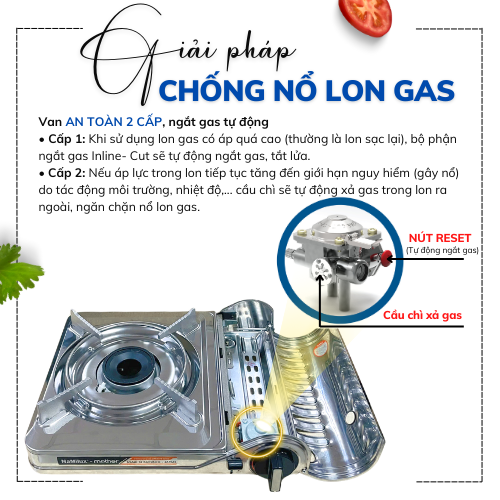 ĐẶC ĐIỂM CỦA BẾP GA CHỐNG NỔ NAMILUX: ️ Chống nổ với van an toàn 2 cấp Bình ga mini khi sạc lại thường có áp không theo tiêu chuẩn vì vậy dễ gây ra