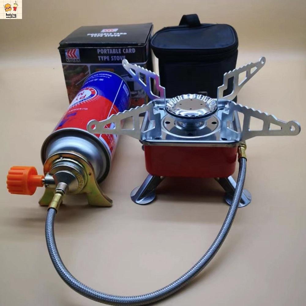Bếp gas mini du lịch xếp gọn hợp kim chống gĩ có dây nối bình gas an toàn có van điều chỉnh gas cao cấp dành cho phượt thủ,cắm trại,dã ngoại an toàn