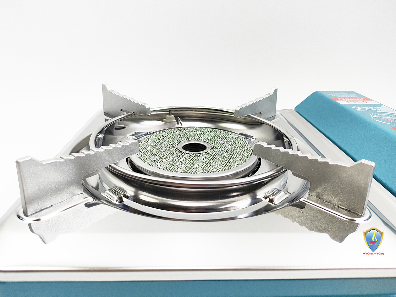 Bếp du lịch sử dụng van ngắt gas an toàn tự động Inline Cut. Bếp sử dụng hệ thống đầu đốt theo tiêu chuẩn JIA (Nhật Bản), kết hợp vòng chắn gió, giúp ngọn lửa