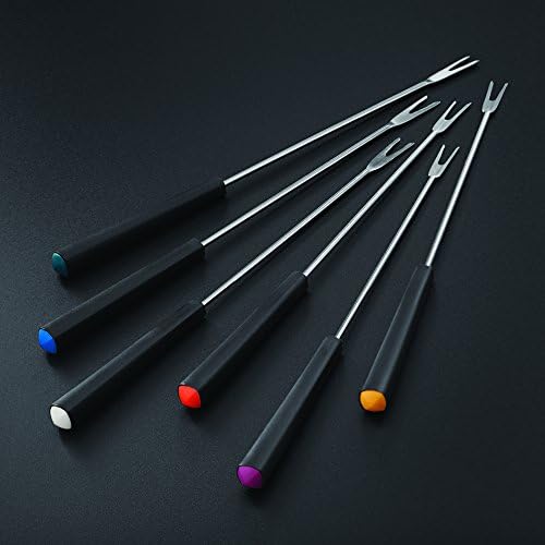 Chảo fondue làm bằng thép không gỉ an toàn với máy rửa chén, dung tích 2 lít Đế thép không gỉ được đánh bóng 6 Nĩa Fondue Đèn bật/tắt và đèn báo hiệu khi bánh