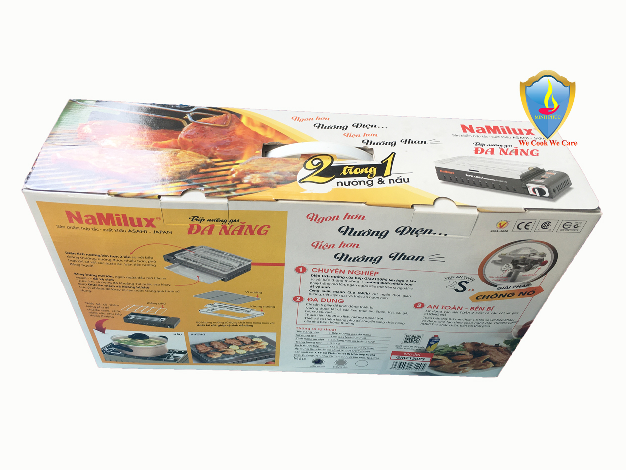 Bếp nướng gas đa năng Namilux GM2020PS mẫu mới cao cấp, màu xám nâu, nướng NGON HƠN NƯỚNG ĐIỆN, TIỆN HƠN NƯỚNG THAN. Đây là dòng bếp nướng gas chuyên nghiệp với bề mặt diện