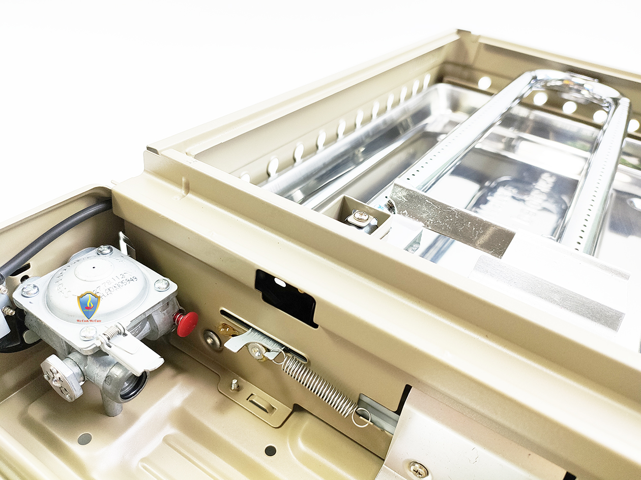 Bếp du lịch sử dụng van ngắt gas an toàn tự động Inline Cut. Bếp sử dụng hệ thống đầu đốt theo tiêu chuẩn JIA (Nhật Bản), kết hợp vòng chắn gió, giúp ngọn lửa