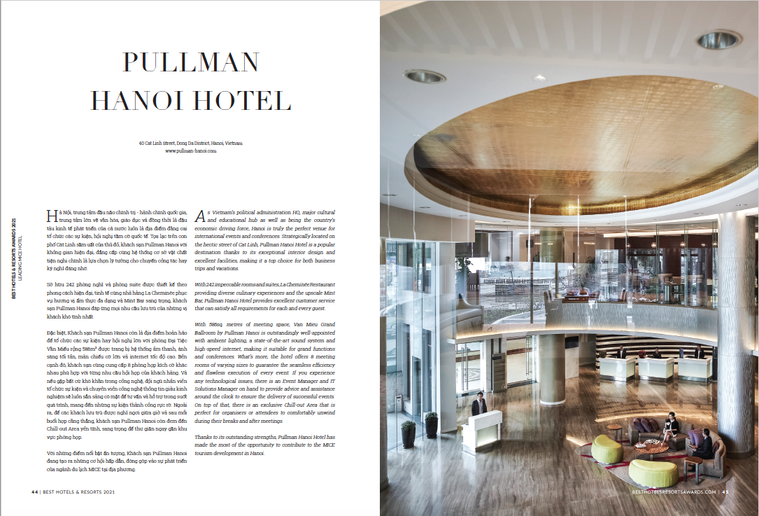 Các cá nhân và tập thể chiến thắng giải thưởng Best Hotels - Resorts Awards 2021 đã được công bố trên ấn phẩm tạp chí Wanderlust Tips số đặc biệt với chủ đề Best Hotels - Resorts 2021.