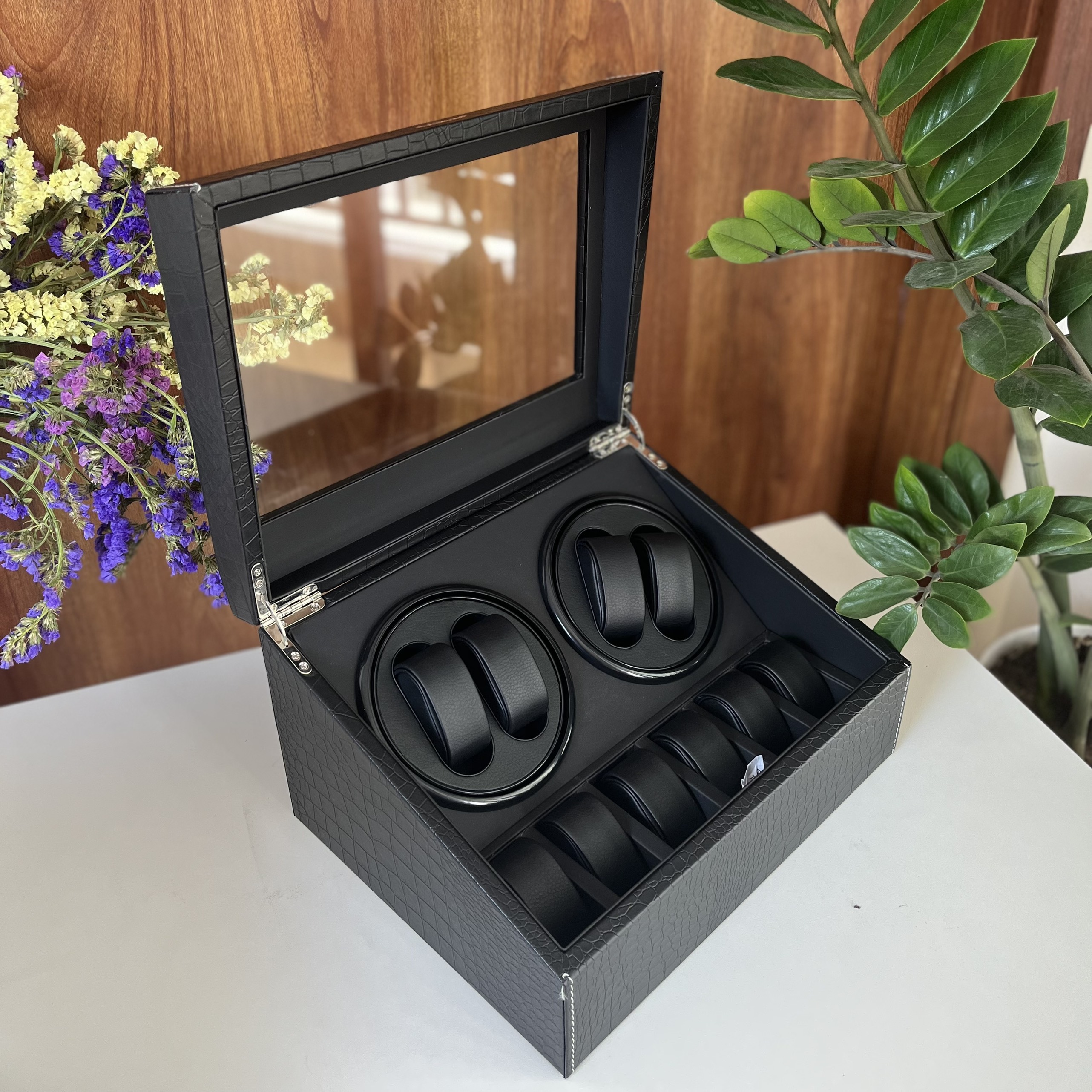 Hộp Lắc Đồng Hồ Cơ 4 Xoay + 6 Tĩnh Vỏ Da - Mã CO4X6D