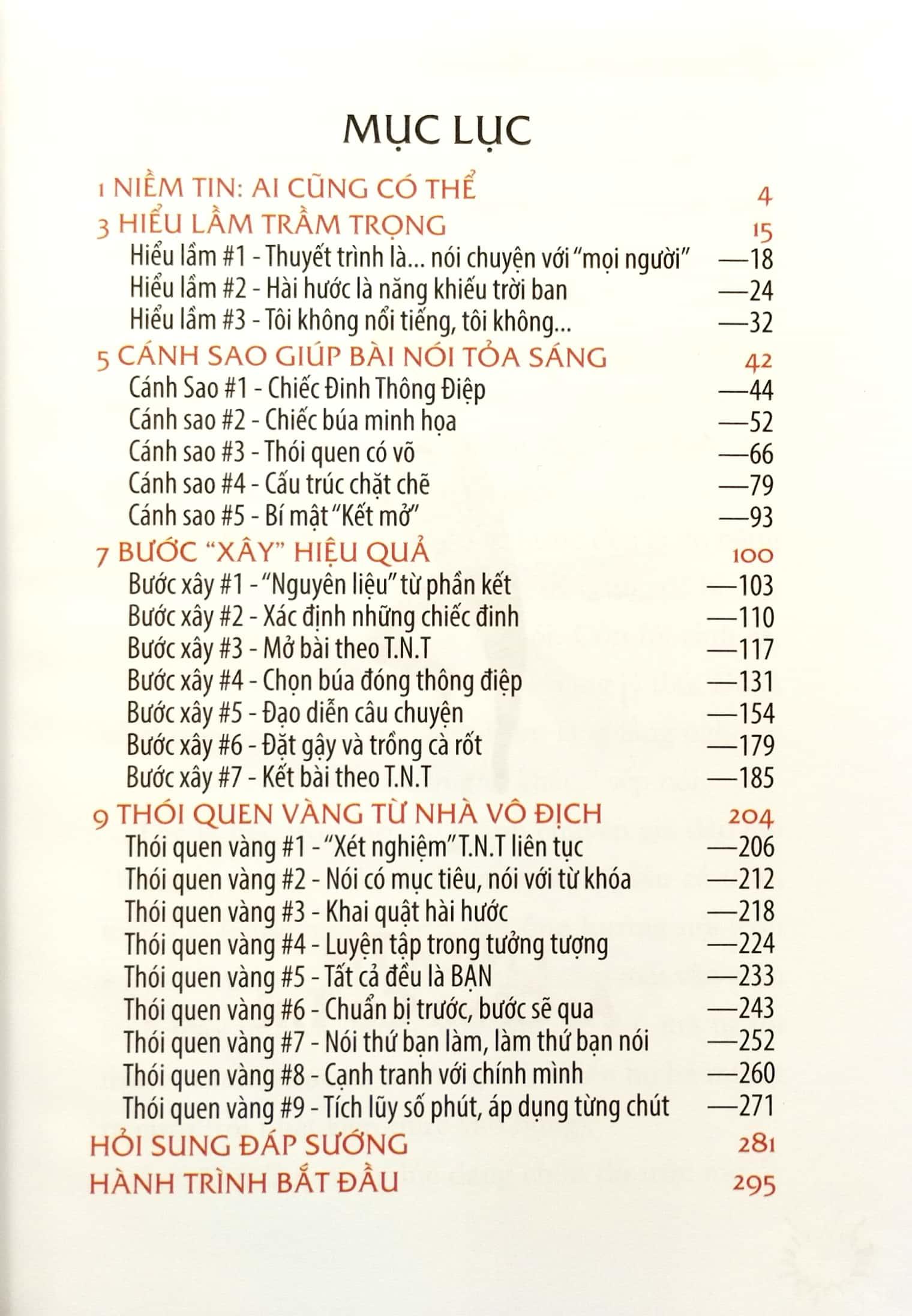 Tất cả là để đảm bảo cuốn sách này thực sự là kho báu, giúp bạn tự tin thuyết trình cuốn hút gấp đôi, khi biết trước những điều mà hầu hết những diễn giả ngoài kia sẽ ước là họ biết trước.