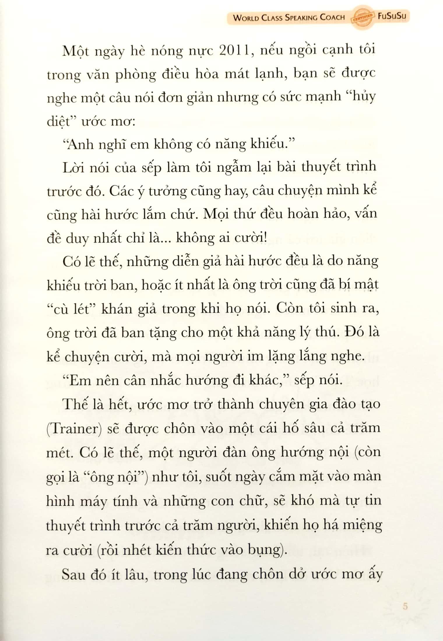 Đọc sách này bạn biết bao nhiêu sai lầm khi thuyết trình, tôi đã mắc hết. Tôi tới đó để tạo động lực làm việc, và tôi nghĩ m.ình đã làm được. Lúc kết thúc, vẻ mặt ai cũng nhẹ nhõm, họ nhìn tôi như muốn nói, “Cuối cùng cũng xong, giờ m.ình có thể quay lại làm việc.”