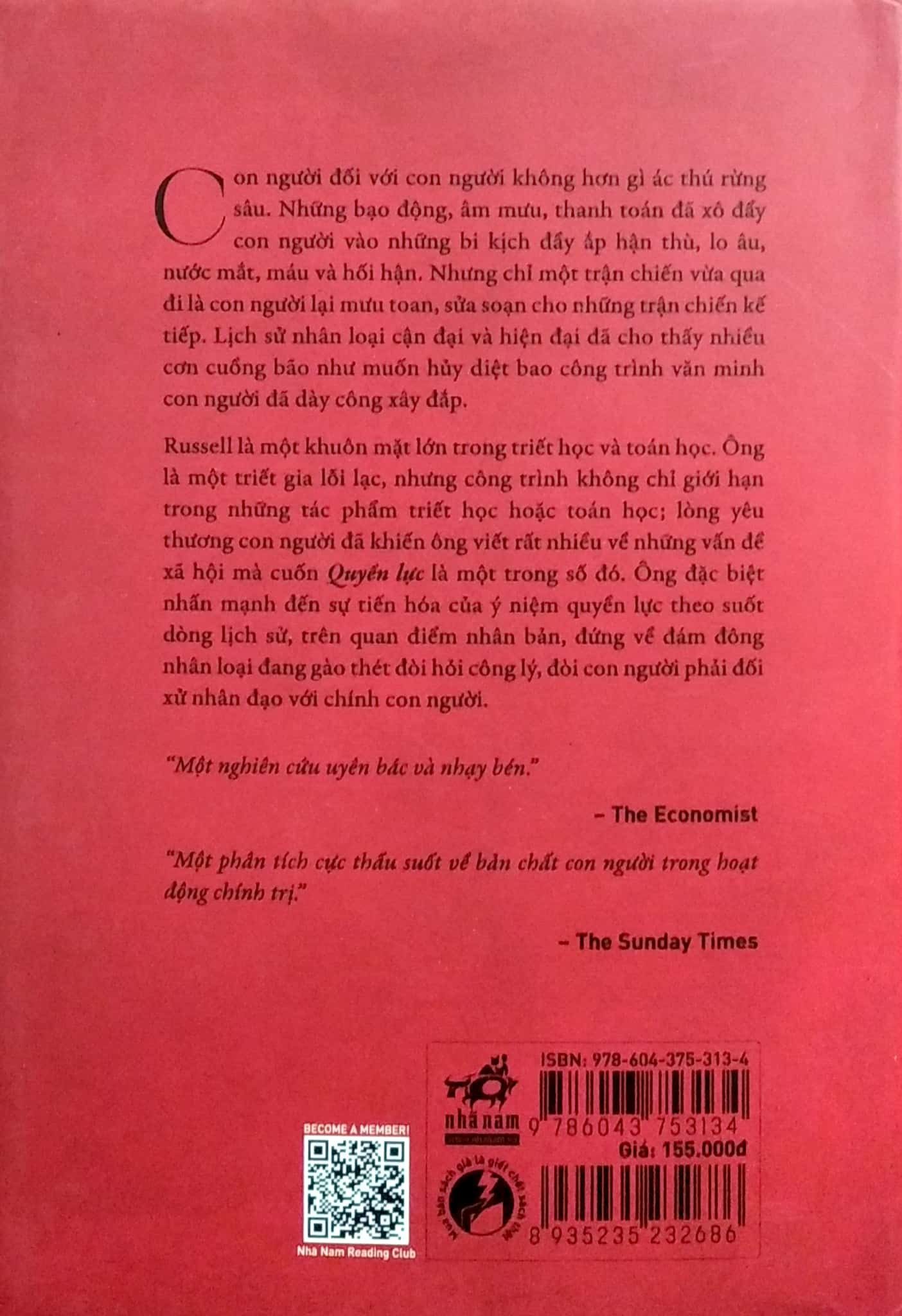 Russell là một khuôn mặt lớn trong triết học và toán học. Ông là một triết gia lỗi lạc, nhưng công trình không chỉ giới hạn trong những tác phẩm triết học hoặc toán học, lòng yêu thương con người đã khiến ông viết rất nhiều về những vấn đề xã hội mà cuốn Quyền lực là một trong số đó. Ông đặc biệt nhấn mạnh đến sự tiến hóa của ý niệm quyền lực theo suốt dòng lịch sử, trên quan điểm nhân bản, đứng về đám đông nhân loại đang gào thét đòi hỏi công lý, đòi con người phải đối xử nhân đạo với chính con người.