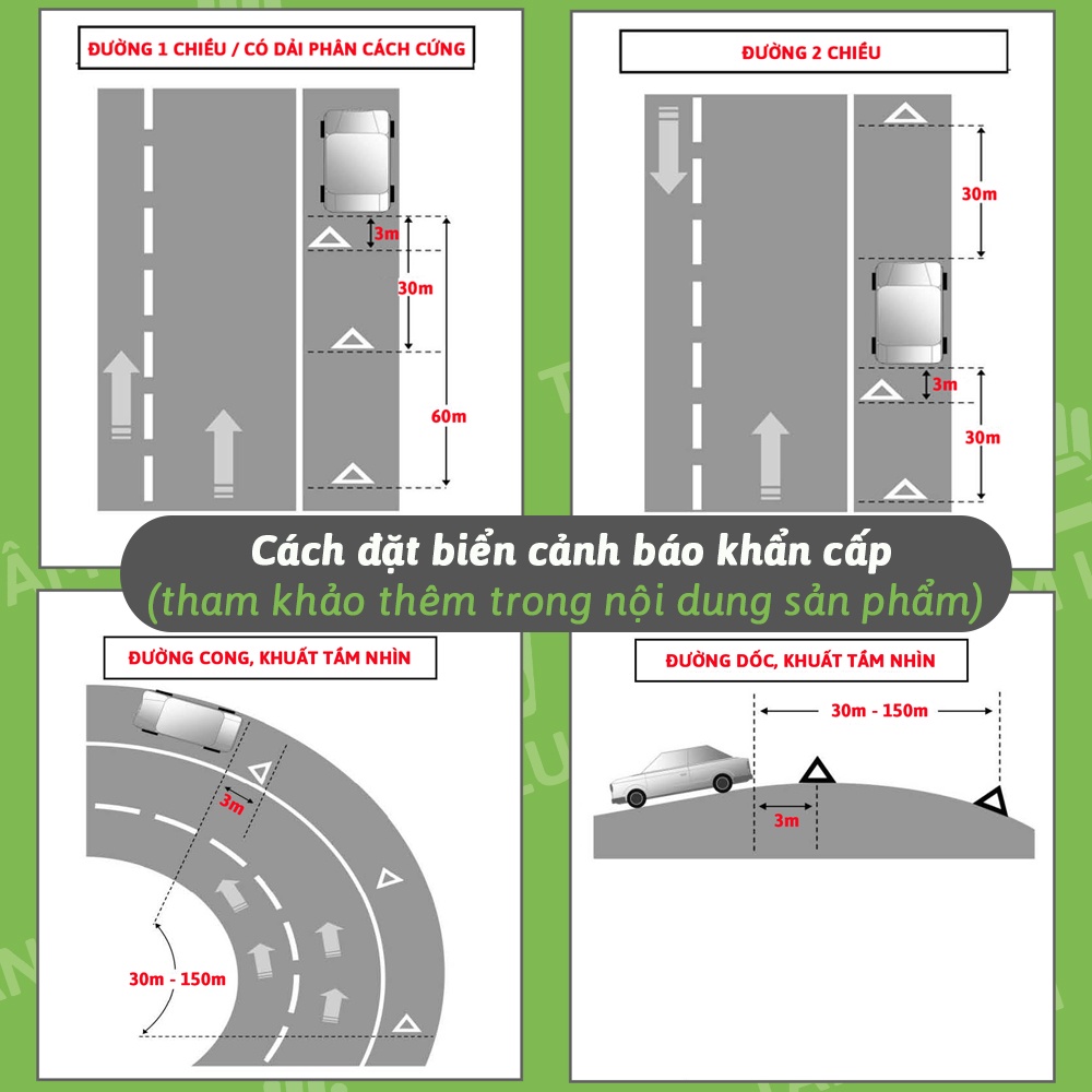 BIỂN CÁNH BÁO NGUY HIỂM TAM GIÁC PHẢN QUANG CHO Ô TÔ ️ Vì sao nên sử dụng Biển báo phản quang tam giác cho Ô Tô? Khi bạn buộc phải dừng xe hoặc đỗ giữa đường do xe bị hỏng hóc, trực trặc máy móc, nhất là phải dừng đỗ trên đường cao tốc, hoặc dừng đỗ vào ban đêm, thời tiết xấu, tầm nhìn bị hạn chế… thì chiếc biển cảnh báo này sẽ vô cùng cần thiết để cảnh báo cho người điều khiển phương tiện khác nhận biết chướng ngại vật, kịp thời xử lý tình huống, đảm bảo an toàn giao thông. Nếu thiếu biển cảnh báo nguy hiểm, không chỉ nguy hiểm cho bản thân, bạn còn có thể bị phạt tới 8 triệu và tước bằng lái tới 4 tháng. ️ Biển Cảnh Báo Nguy Hiểm Tam Giác Phản Quang Cho Ô Tô Tâm Luân: