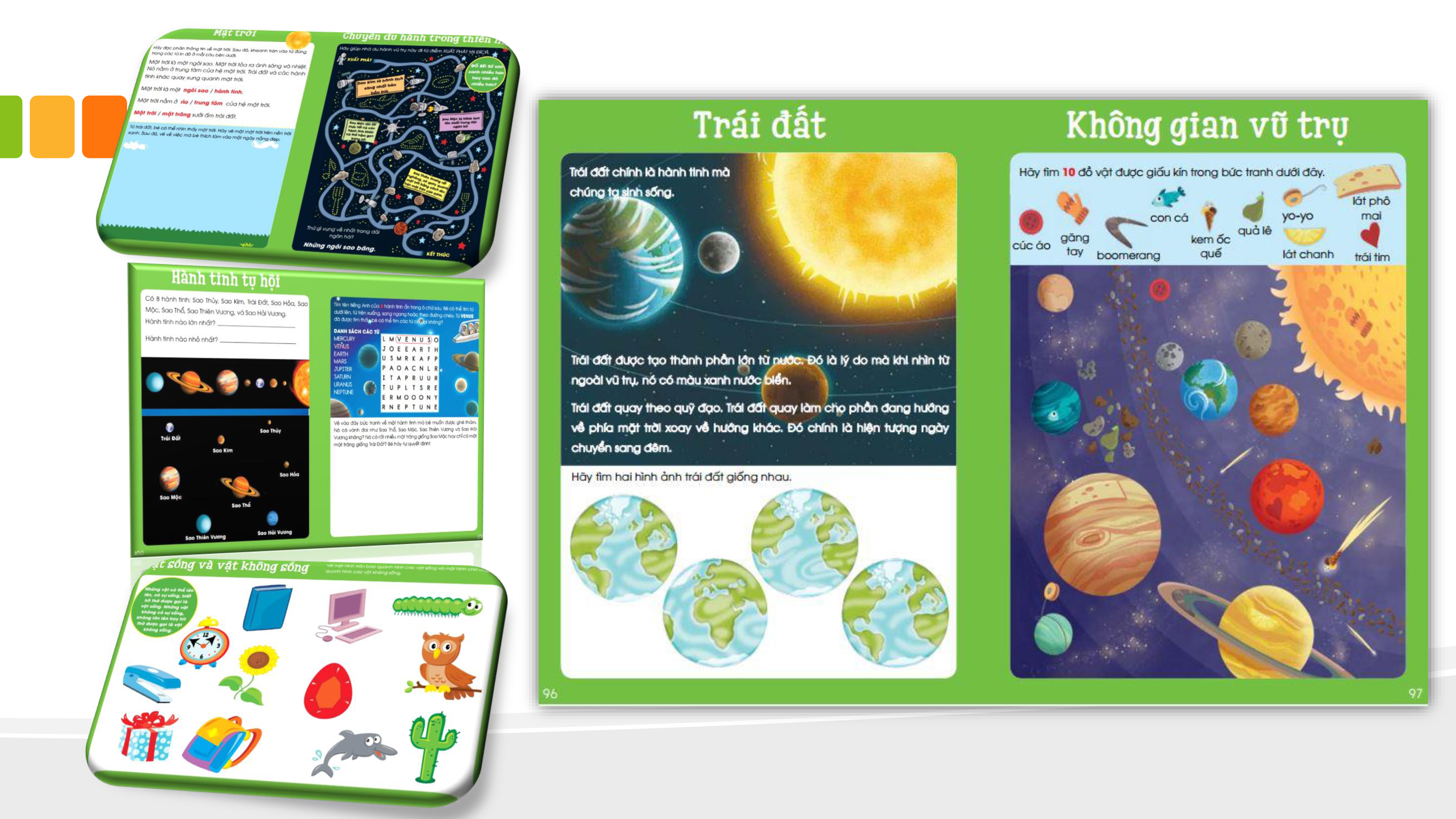 Mỗi cuốn sách có 20 chủ đề thực hành lý thú. Bộ sách giới thiệu cho trẻ những kiến thức cơ bản về các hiện tượng khoa học xảy ra trong đời sống thường ngày.