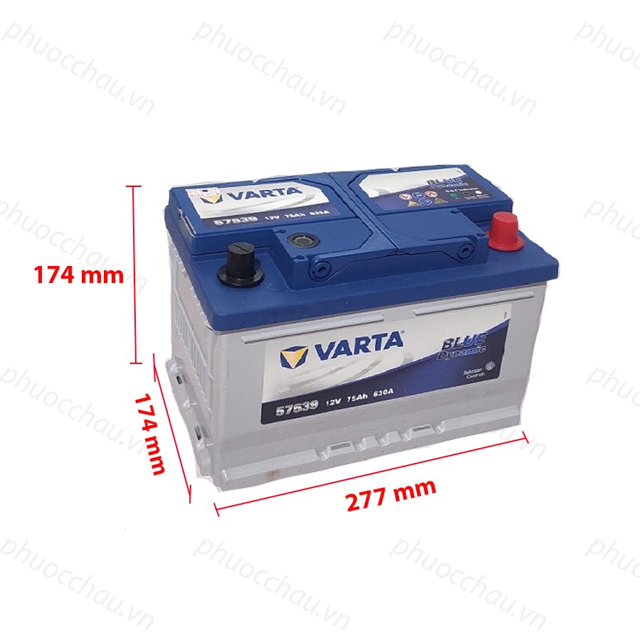 Ắc quy Varta Din 57539 (12V 75Ah),Ắc quy Đức dùng cho xe ô tô Chevolet, fortuner, For Ranger,Transit