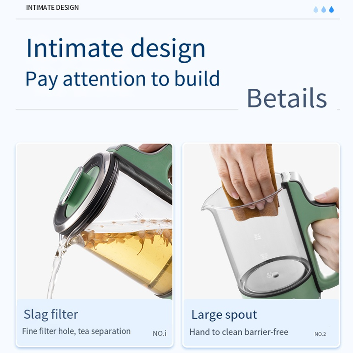 - Chất liệu bền bỉ và an toàn: Thân bình được làm từ Thuỷ tinh Borosilicate, có khả năng chịu và chống sốc nhiệt tốt hơn thủy tinh thông thường và bền đẹp theo thời gian. Ngoài ra, bình được kết hợp màng lọc trà bằng Inox không gỉ (304), thân máy làm bằng nhựa ABS (BPA Free) an toàn với nhiệt độ, đảm bảo sức khoẻ người dùng giúp an tâm hơn khi sử dụng. An toàn và Bảo mật: