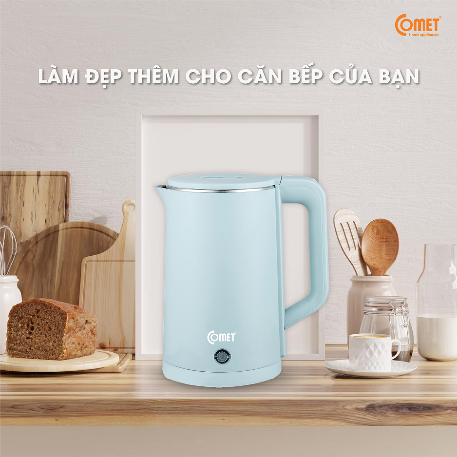 - Bình đun siêu tốc Comet CM8226 với những tính năng hữu ích, mang vẻ ngoài đẹp mắt, tạo tính thẩm mỹ cao, phù hợp với mọi không gian bày trí trong gian bếp.