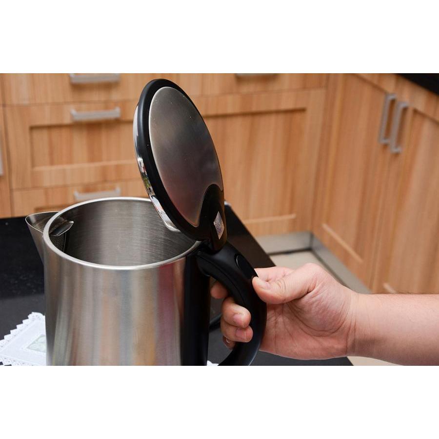 Dung tích: 1.7L Công suất: 1800W Ưu điểm nổi bật: 2 lớp cách nhiệt: Thép không gỉ bên trong, nhựa mát tay bên ngoài – an toàn tuyệt đối, nhất là với gia đình có