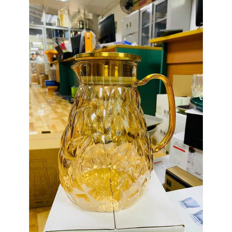 ✨Bình đựng nước uống thủy tinh vàng vân bong bóng