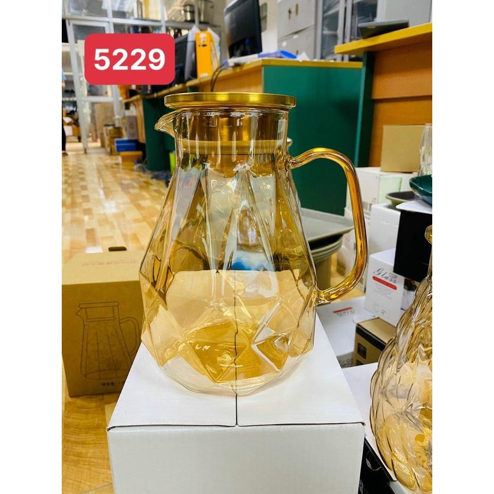 ✨Bình đựng nước uống thủy tinh vàng vân kim cương hạt to