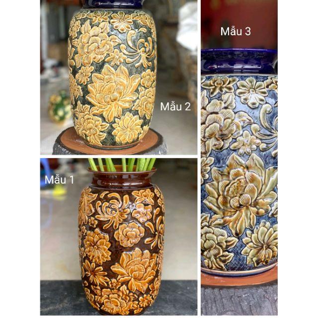 Bình hoa cao cấp Bát Tràng, hàng chuẩn loại 1, dáng chum họa tiết đắp nổi được thực hiện thủ công 100% bởi bàn tay lành nghề của các nghệ nhân làng nghề. Sản phẩm