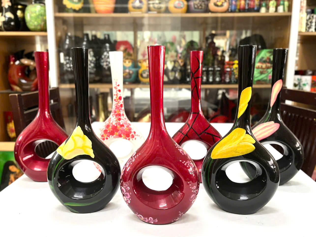 Lọ hoa sơn mài tuân thủ chặt chẽ quy trình và kỹ thuật từ khâu làm vóc cho đến khâu thể hiện, tạo nên những họa phẩm sơn mài đậm bản sắc Việt mà không