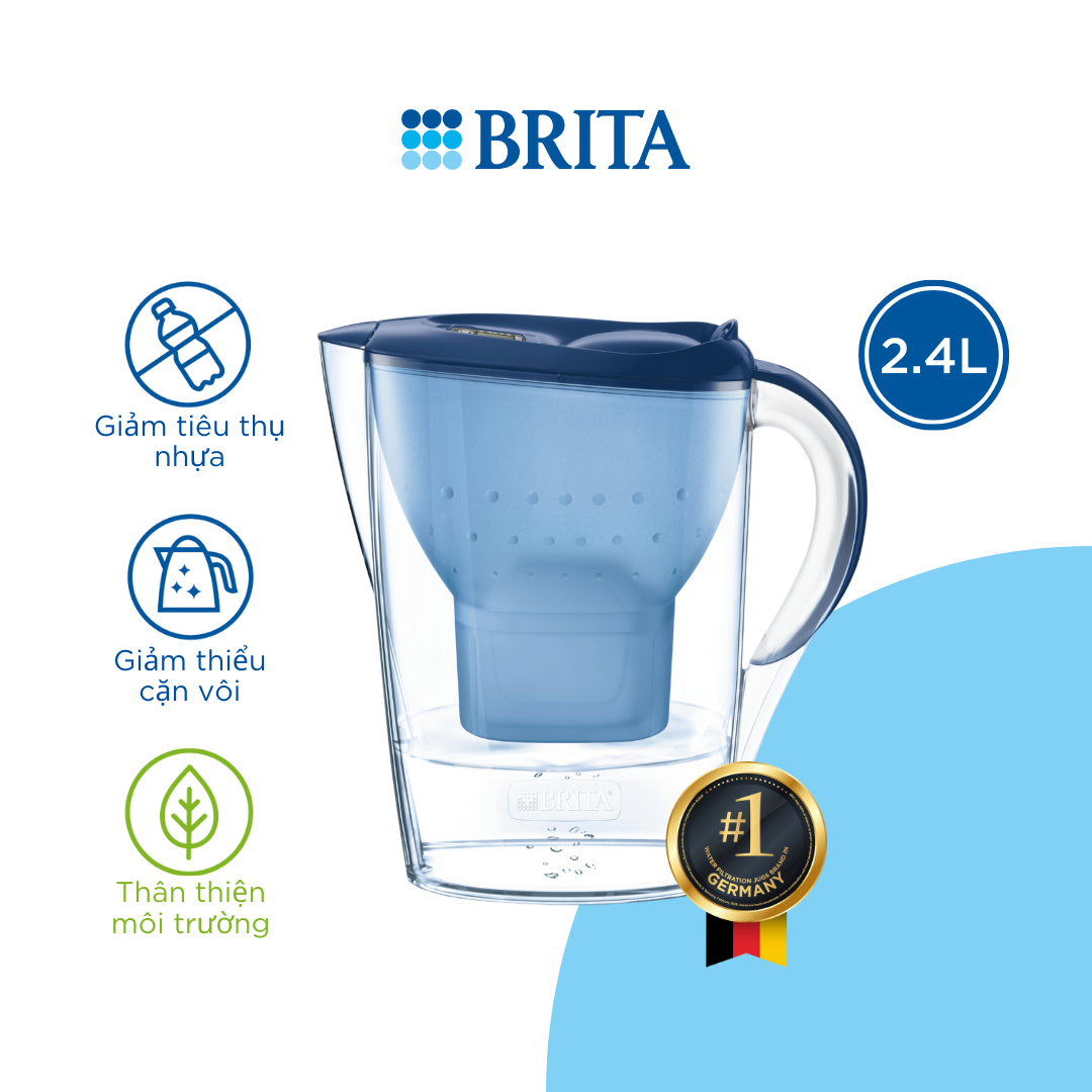 Giới thiệu ngắn về tầm quan trọng của nước, thương hiệu Brita và bình lọc nước Bình Lọc Nước BRITA Marella Basic Blue - 2.4L (Kèm Maxtra Plus)