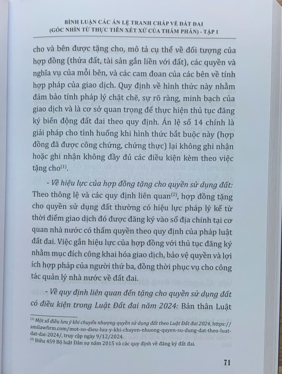 Bình luận các án lệ tranh chấp về đất đai – Góc nhìn từ thực tiễn xét xử của Thẩm phán (tập 1 và 2) Tập 1- Các án lệ về hợp đồng dân sự