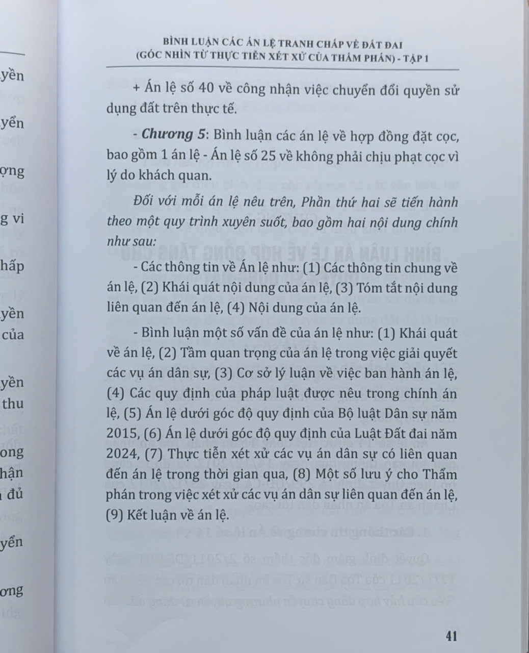 Tác giả hy vọng rằng, cuốn sách “Bình luận các Án lệ tranh chấp về đất đai (Góc nhìn từ thực tiễn xét xử của thẩm phán) – Tập 2: Các án lệ về thừa kế” sẽ là một nguồn tài liệu tham khảo hữu ích, người bạn đồng hành tin cậy cho các đồng nghiệp Thẩm phán, Kiểm sát viên, Luật sư, các nhà nghiên cứu, giảng viên, sinh viên luật và những người dân đang cần tìm hiểu để bảo vệ quyền và lợi ích hợp pháp của mình.