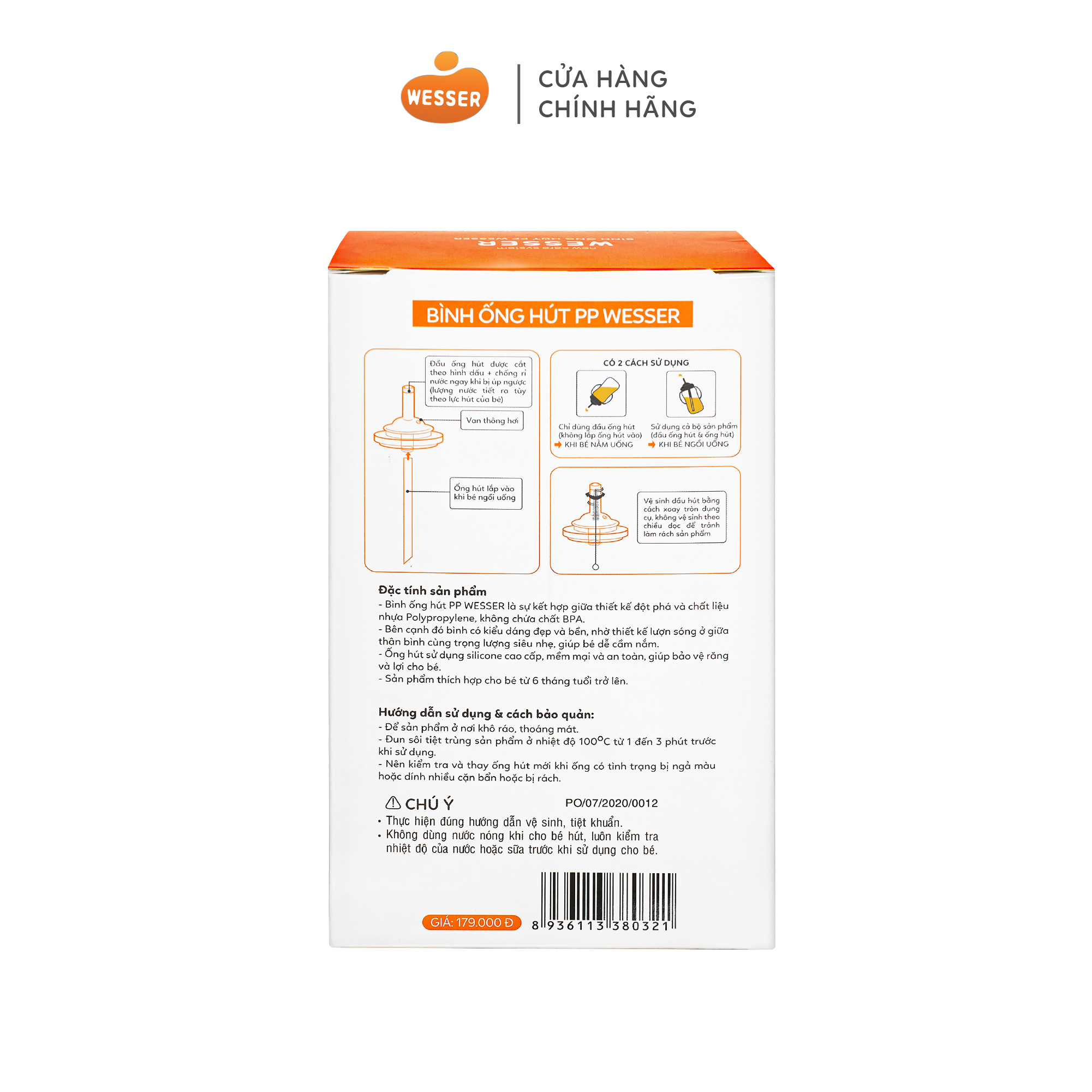 CẢNH BÁO: KHÔNG ĐƯỢC sử dụng lò vi sóng, máy tiệt trùng hơi nước và nước đun sôi để tiệt trùng bình . Vui lòng sử dụng ống hút để uống nước, nhiệt độ nước