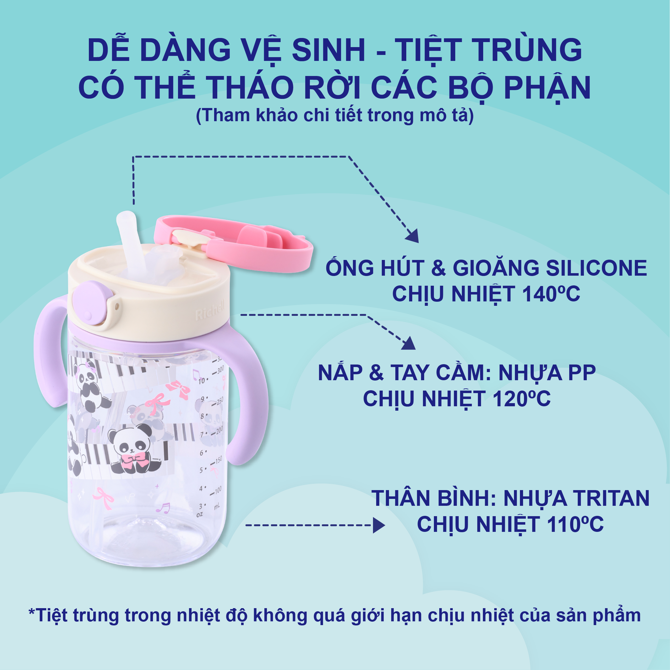 ✨Bình ống hút Richell AXSTARS chất liệu tritan có bọc đế bình | Baby
