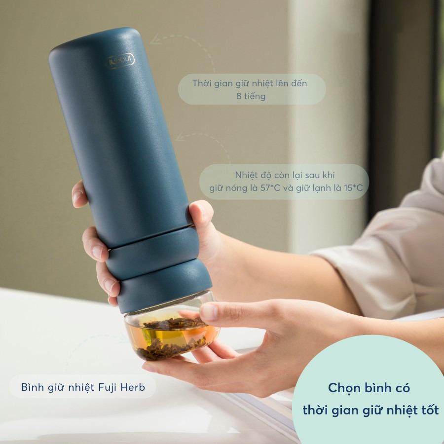 Bình Pha Trà Giữ Nhiệt Fuji Leaf 450 ml - Inochi .3585 - BÌNH PHA TRÀ GIỮ NHIỆT FUJI HERB có cấu tạo cốc thủy tinh pha trà, nắp vặn, lưới lọc trà, nắp vặn 2 chiều có van khóa nước, thân bình...