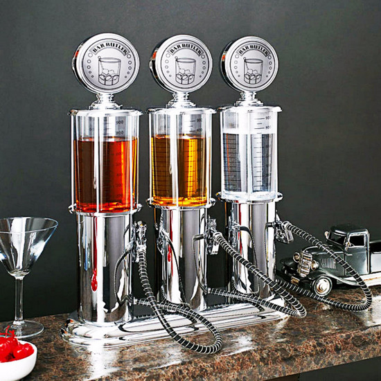 - Bình rót độc đáo này có thiết kế giống như một cây bơm xăng tự động. Bạn có thể sử dụng bình rót rượu cây xăng 1 vòi này để chứa rượu, bia, các loại cocktail mạnh hoặc nước hoa quả nguyên chất để uống. Như một đồ vật trang trí thật đẹp trong phòng khách, chiếc bình rót đặc biệt sẽ khiến khách khứa và bạn bè của bạn thật ngạc nhiên về bữa tiệc nhẹ tất niên hay liên hoan.