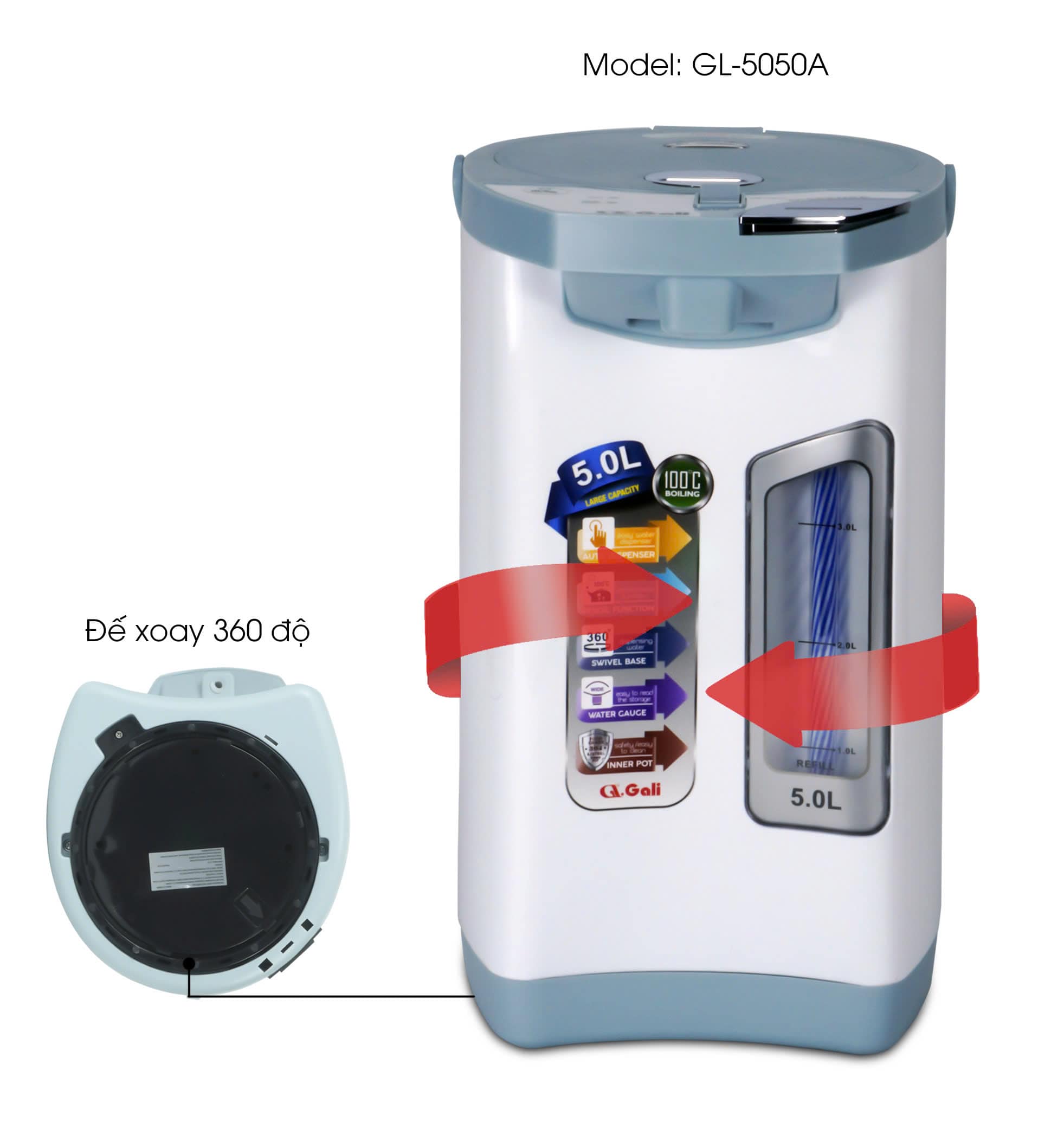Bình thủy điện Gali GL-5050B 5L – Giữ ấm đa nhiệt, khóa an toàn, tiện nghi cho cả nhà!