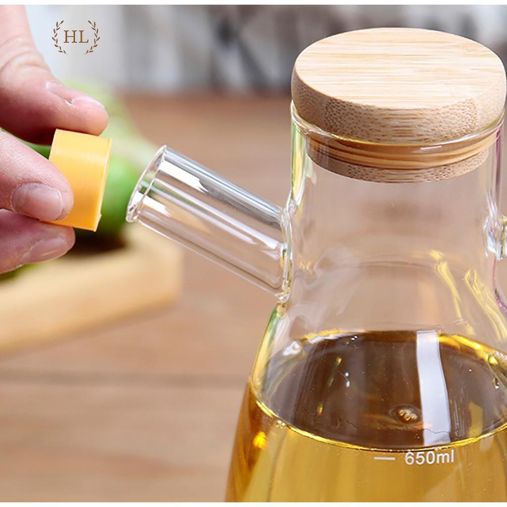 ✨Bình thủy tinh chịu nhiệt, chai lọ có nắp gỗ, nút silicon đựng dầu ăn, giấm, nước tương, nước mắm | BÌNH DẦU NẮP GỖ TRE