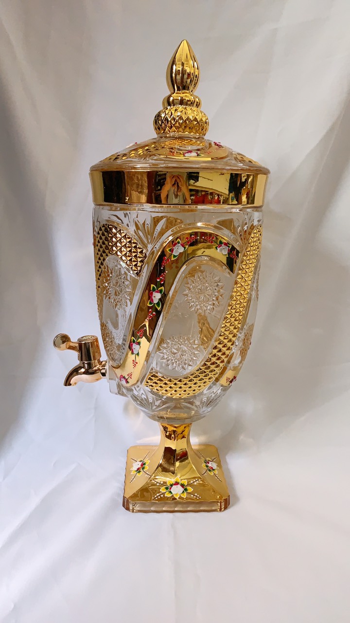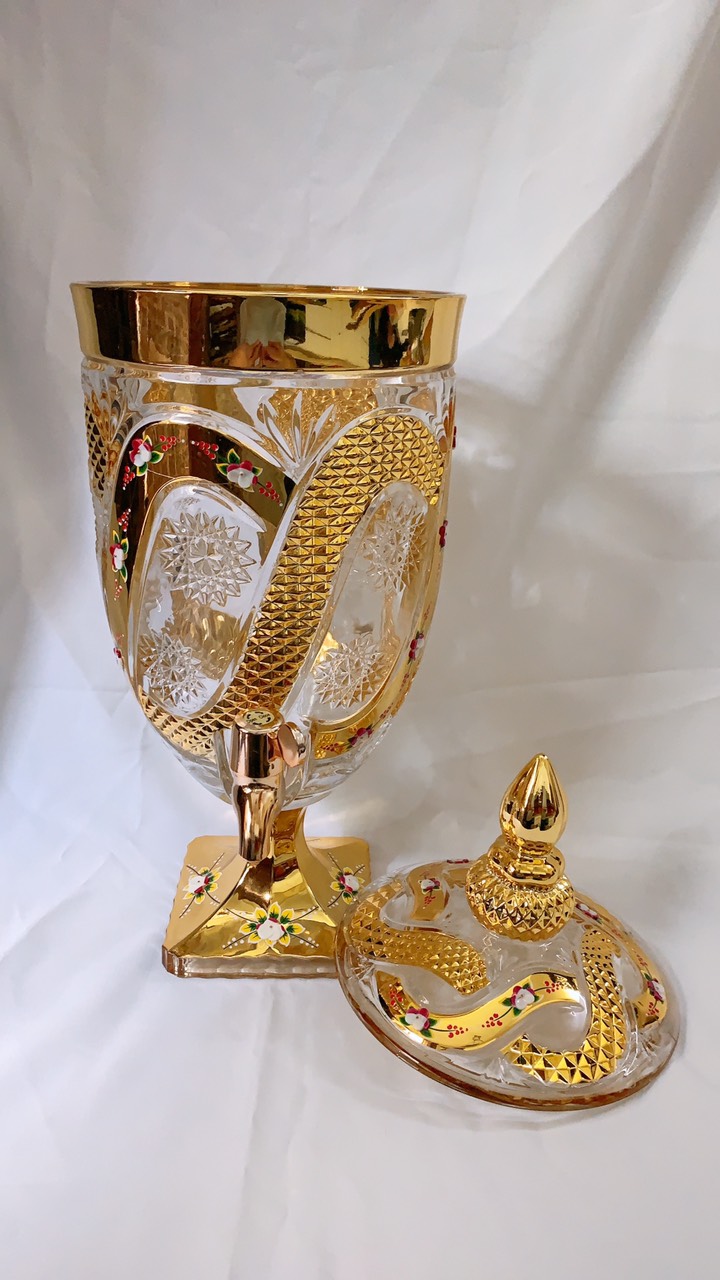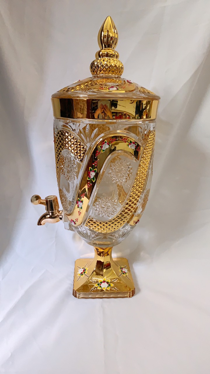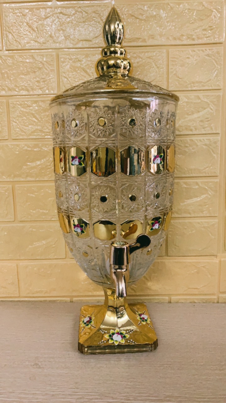 ✨BÌNH THỦY TINH ĐỰNG NƯỚC UỐNG CÓ VÒI VẶN CAO CẤP HOA KHẢM VÀNG VÀNG - ANHT688 - GIAO HOA VĂN NGẪU NHIÊN