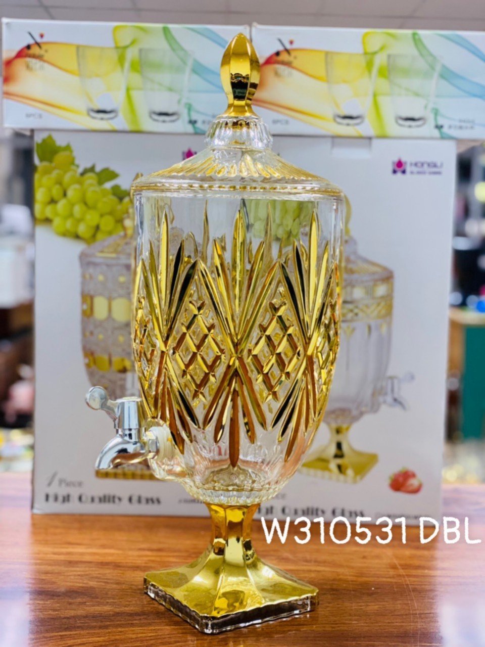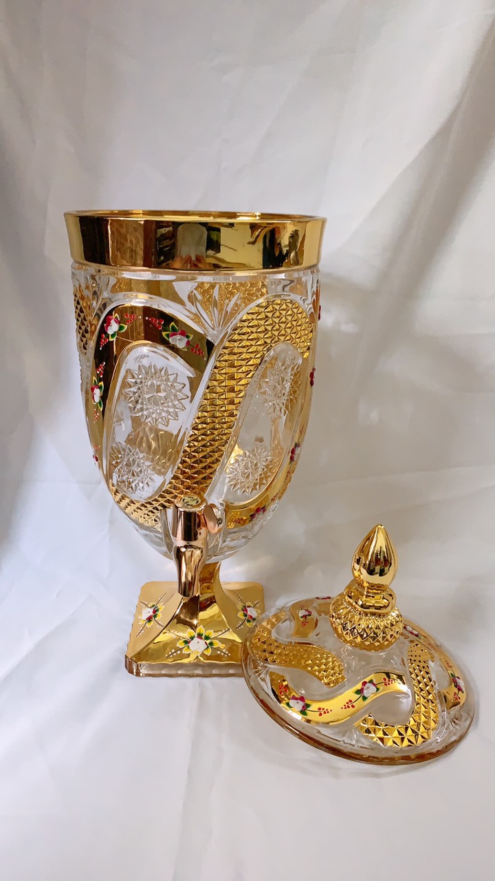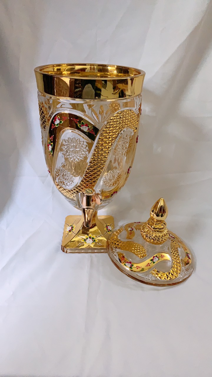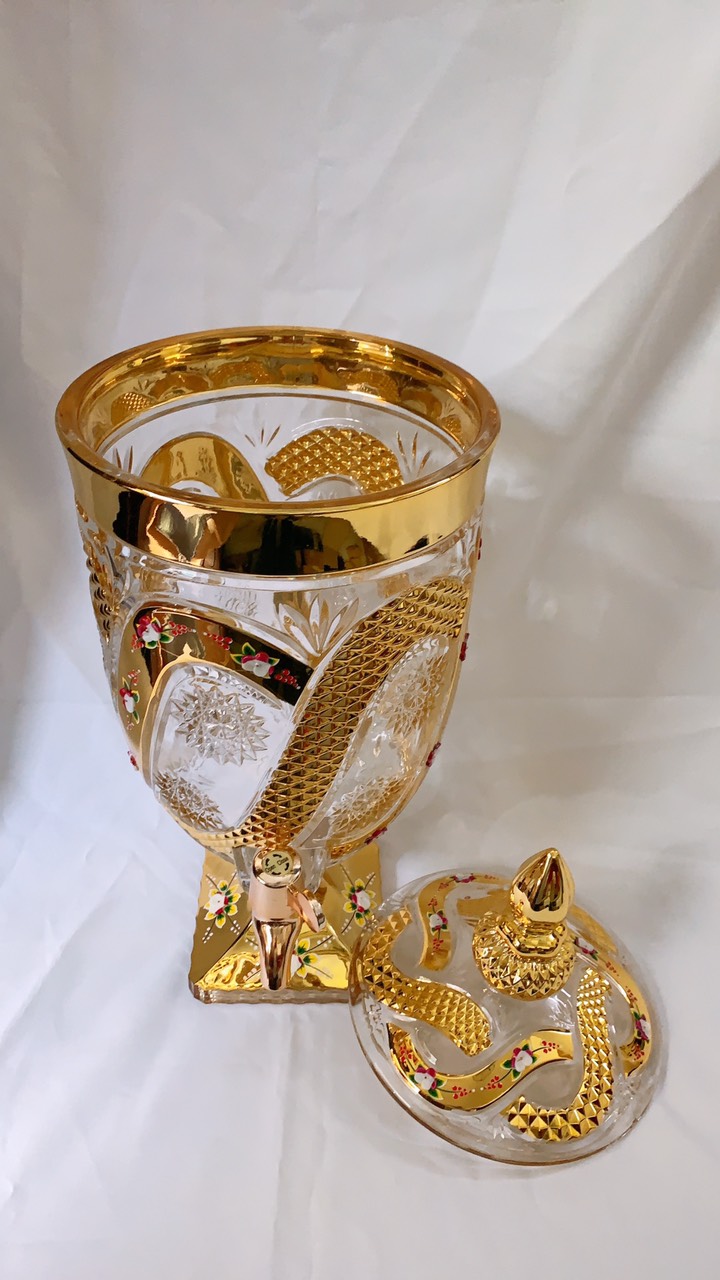 ✨BÌNH THỦY TINH ĐỰNG NƯỚC UỐNG CÓ VÒI VẶN CAO CẤP HOA KHẢM VÀNG VÀNG - ANHT688 - GIAO HOA VĂN NGẪU NHIÊN