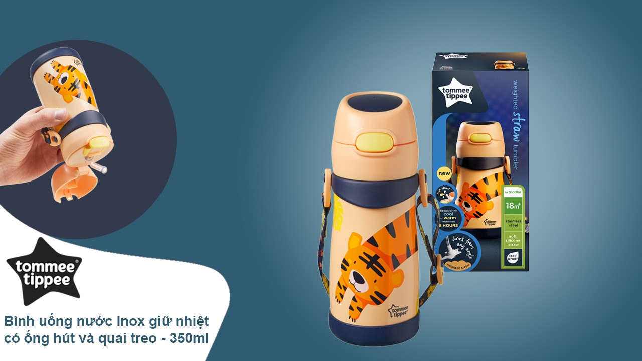 Bình uống nước Inox giữ nhiệt có ống hút và quai treo cho bé Tommee Tippee 350ml từ 18 thángThương hiệu: Tommee Tippee – Anh QuốcMã sản phẩm: 448018 Thời gian trôi thật nhanh, bé của bạn ngày nào...