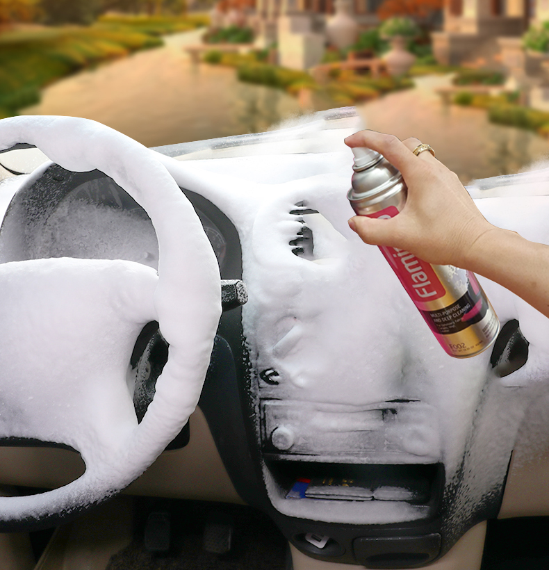 _Trong quá trình sử dụng, xe ô tô lâu ngày có thể xuất hiện các vết bẩn, vết ố và mùi hôi khó chịu. Chỉ với việc sử dụng bình xịt bọt đa năng Flamingo, bạn hoàn toàn có thể xử lý mùi hôi và vết bẩn nhanh chóng chỉ sau 15 phút.