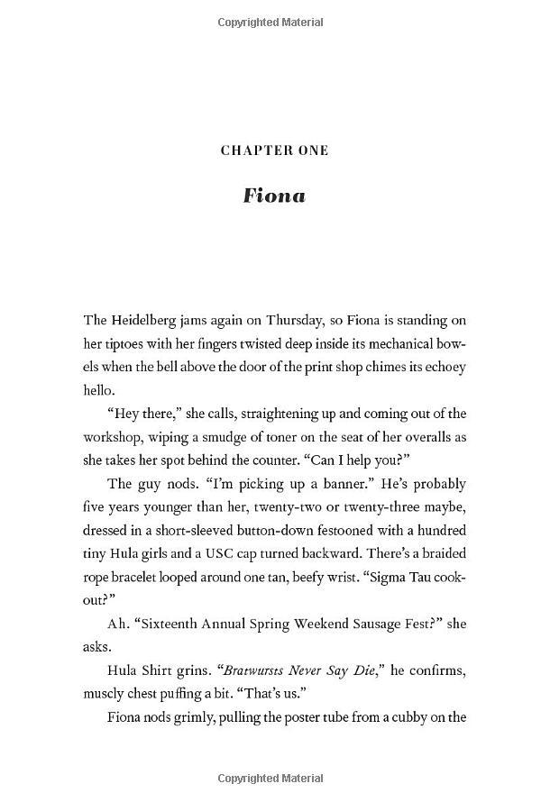 Against her better judgment, Fiona agrees to have lunch with Sam. What happens next takes them both by surprise. Sam is enthralled by Fiona’s take-no-prisoners attitude, and Fiona discovers a lovable goofball behind Sam’s close-up-ready face. Long drives to the beach, late nights at dive bars . . . theirs is the kind of kitschy romance Hollywood sells. But just like in the rom-coms Fiona despises, there’s a twist that threatens her new love. Sam doesn’t know the full story behind her breakdown. What happens when she reveals the truth?