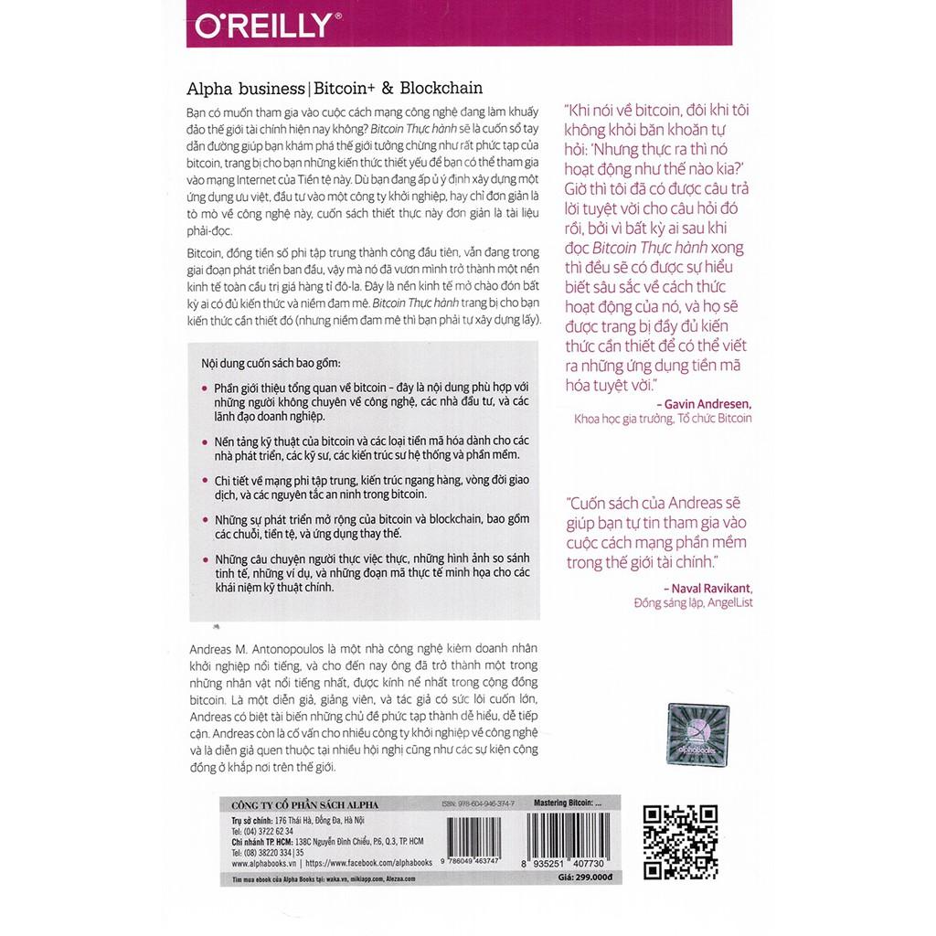 1/ Mastering Bitcoin - Bitcoin Thực Hành cung cấp các kiến thức cần thiết để giúp độc giả gia nhập thế giới của tiền ảo. Bitcoin là đồng tiền số thành công đầu tiên không do bất kỳ một chính phủ nào phát hành. Mặc dù bitcoin vẫn đang ở giai đoạn mới hình thành tuy nhiên, nó đã tạo ra đươc một nền kinh tế hàng tỉ đô. Nền kinh tế này luôn mở ra chào đón tất cả những ai có kiến thức và đam mê gia nhập. Và Mastering Bitcoin cung cấp cho bạn kiến thức, còn bạn chỉ cần theo đuổi nó với đam mê.