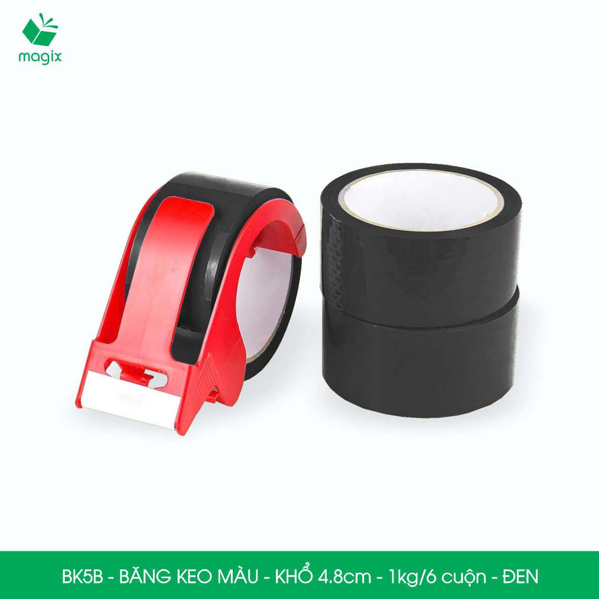 ✨BK5B - 6 cuộn băng keo màu khổ 4.8cm loại 1kg/6 cuộn - Đen - Băng keo, băng dính đóng hàng