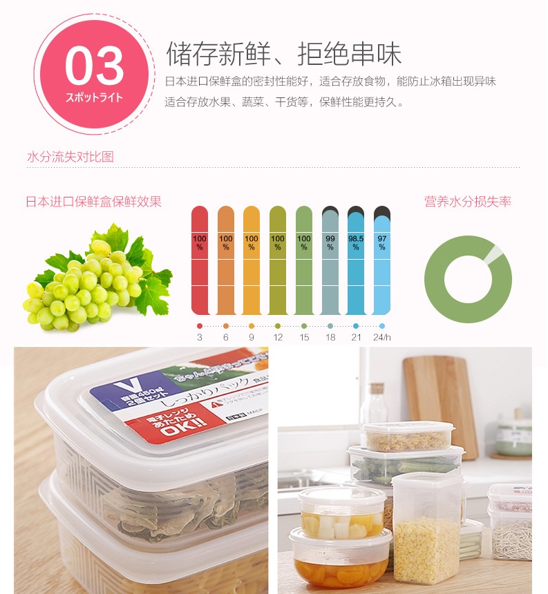 Bộ 03 hộp thực phẩm inomata 1300ml hàng nội địa Nhật Bản Mã sản phẩm: No.1853# Dung tích: 1300ml ~ kích thước: 12.2 x 17.3 x 10.2Hcm Chất liệu nhựa PP cao cấp, kết hợp