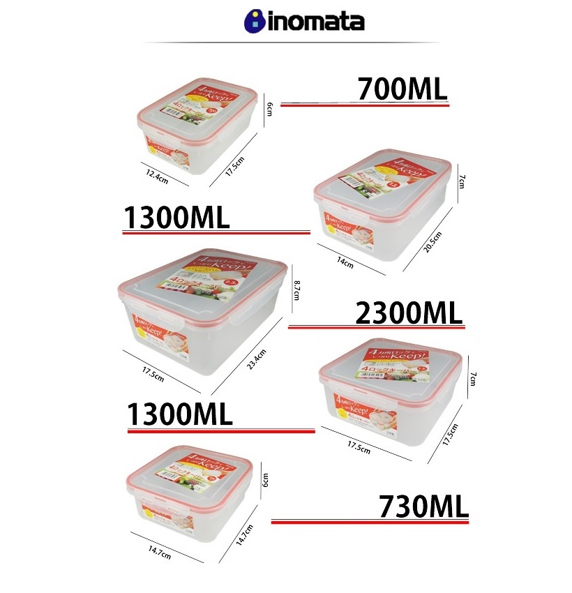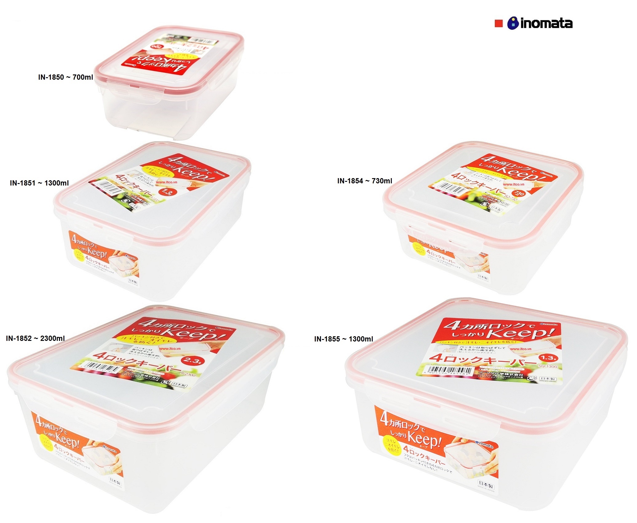 Bộ 05 hộp thực phẩm inomata (700ml + 1300ml + 730ml + 1300ml + 2300ml) hàng nội địa Nhật Bản