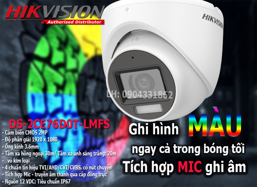 CAMERA DOME TÍCH HỢP MIC GHI ÂM DS-2CE76D0T-LMFS