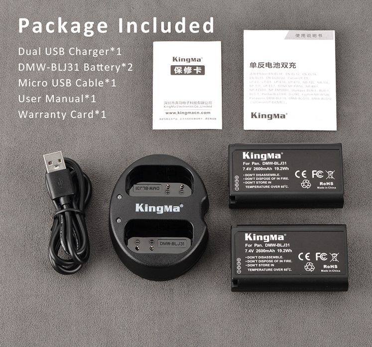 Bộ 1 pin 1 sạc đôi Kingma cho Panasonic DMW-BLJ31