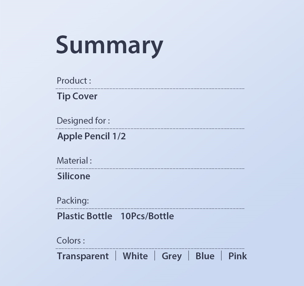 Nó được thiết kế đặc biệt cho Apple Pencil (cả Gen.1 và Gen.2) và được làm bằng silicon để bảo vệ đầu Apple Pencil khỏi bị mòn và màn hình iPad không bị trầy xước