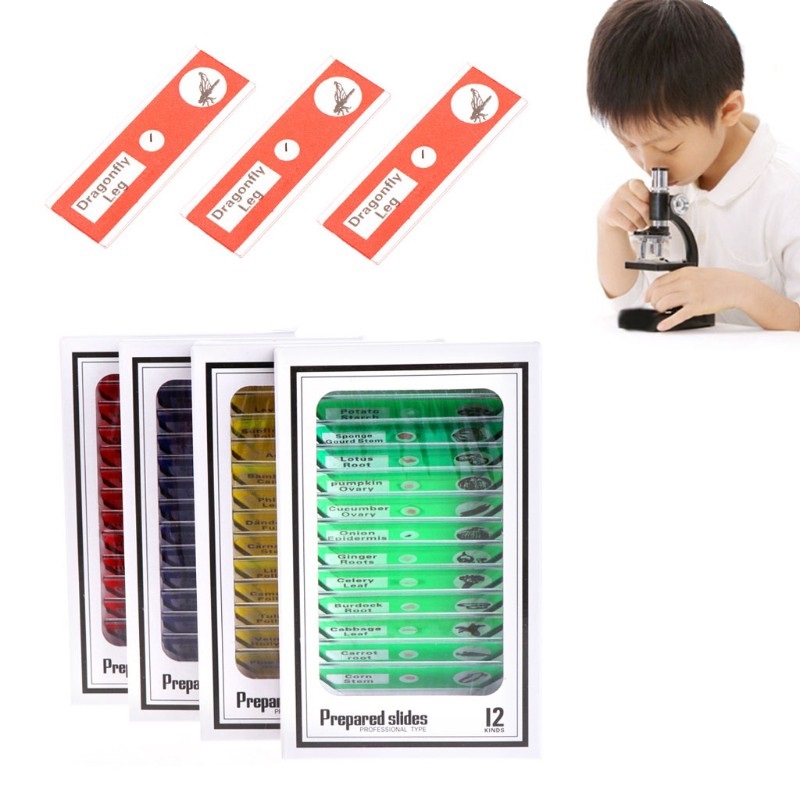 Bộ 12 tiểu bản mẫu vật của động thực vật dùng trên kính hiển vi Các mẫu được kín với một coverslip để bảo quản mẫu vật và ngăn ngừa ô nhiễm. Tuyệt vời