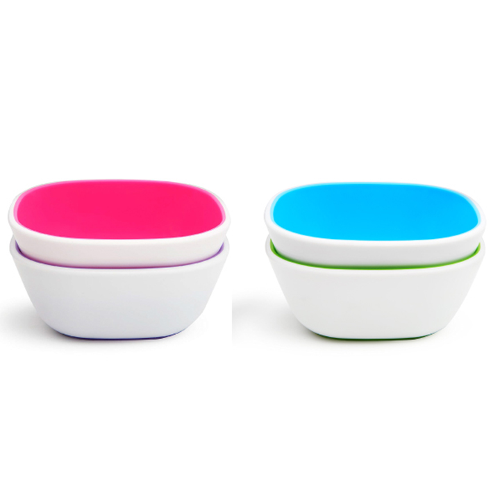 - Bộ 4 Bát Có Nắp Và 2 Thìa Munchkin MK43867 gồm 4 bát có nắp kèm 2 thìa với màu sắc khác nhau được chế tạo từ chất liệu nhựa an toàn không chứa BPA,