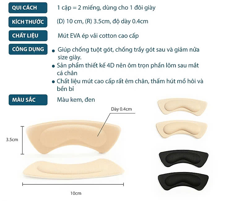 - Quy cách: 2 cặp = 4 miếng, dùng cho 2 đôi giày