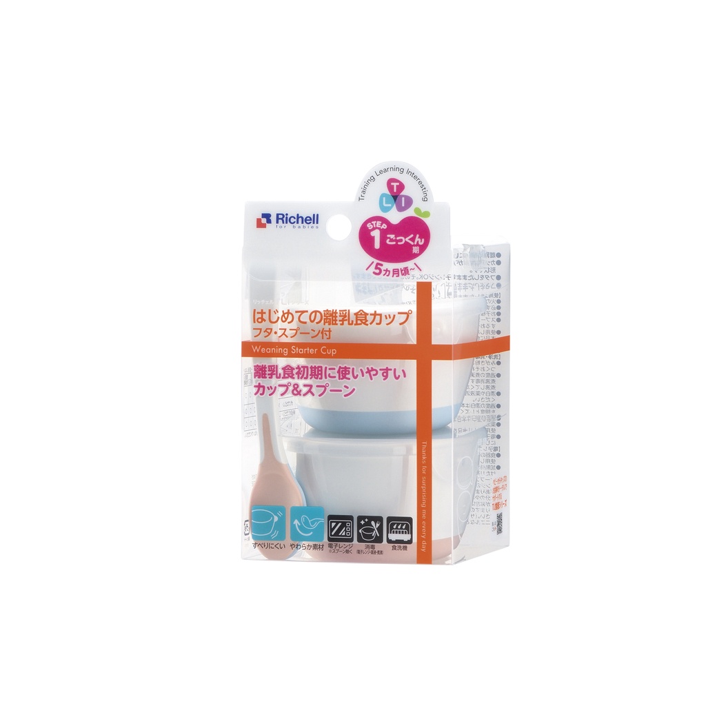 ✨Bộ 2 chén ăn dặm TLI Richell Nhật Bản - bước 1 có nắp kèm 2 muỗng mềm | Baby