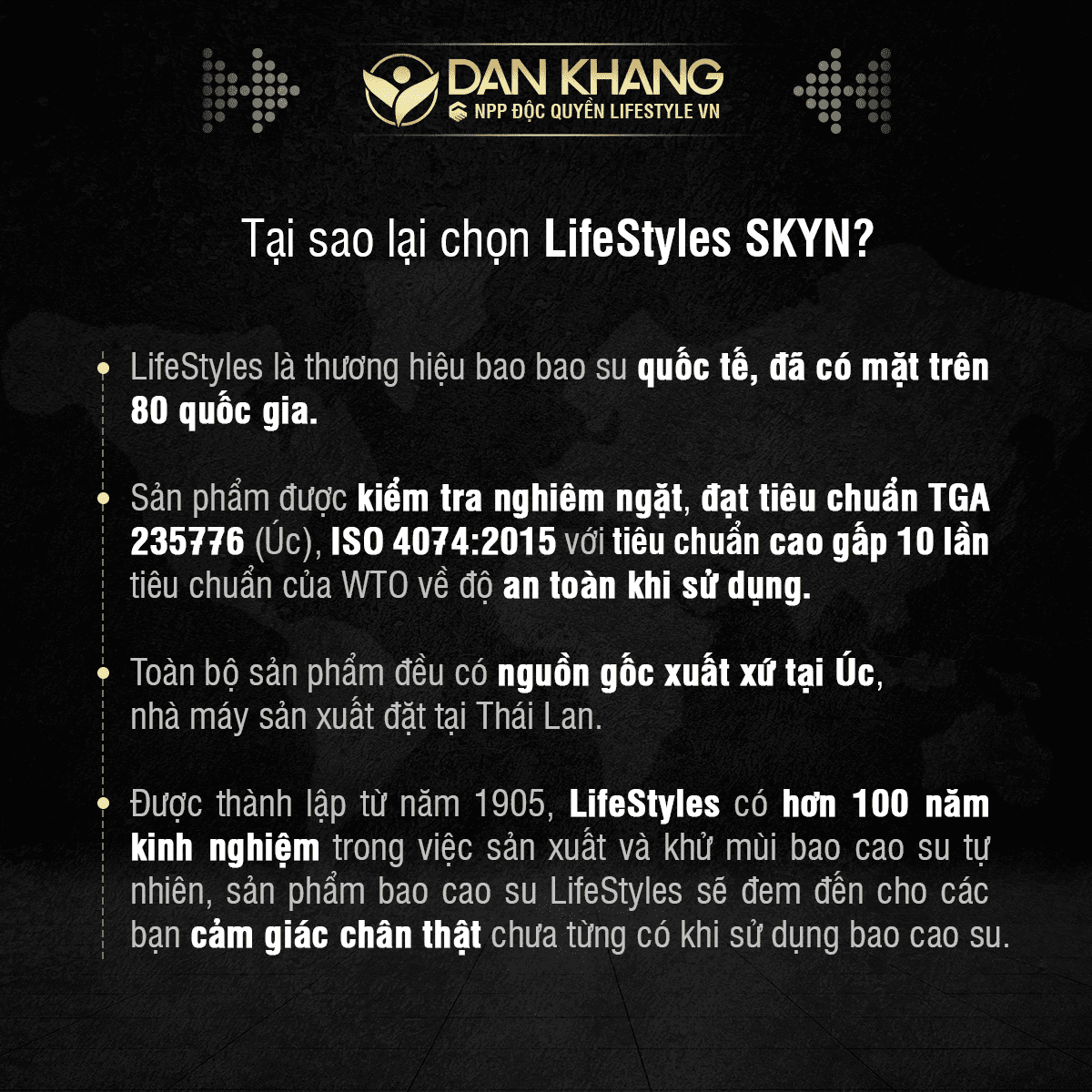 - Giao hàng hỏa tốc nội thành TPHCM trong 2-4 giờ ---BAO BÌ BẢO MẬT VÀ LUÔN CHE TÊN SẢN PHẨM KHI GIAO HÀNG, QUÝ KHÁCH AN TÂM NHÉ ---- ĐẶC ĐIỂM NỔI BẬT CỦA BAO CAO SU LIFESTYLES SKYN ELITE CAO CẤP