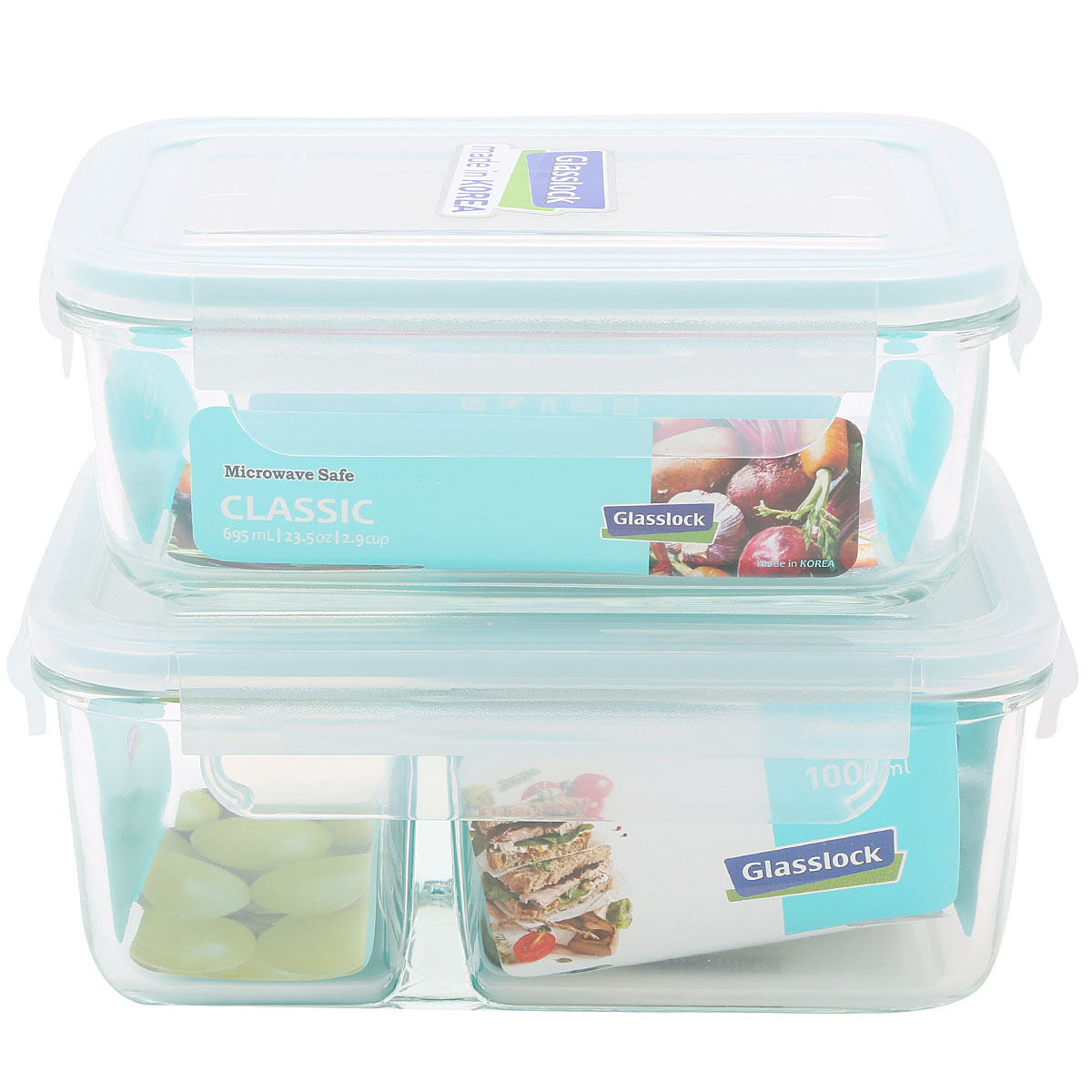 ✨Bộ 2 Hộp Thủy Tinh Cường Lực Glasslock 715ml Và Hộp Chia Ngăn 1000ml + Túi Giữ Nhiệt