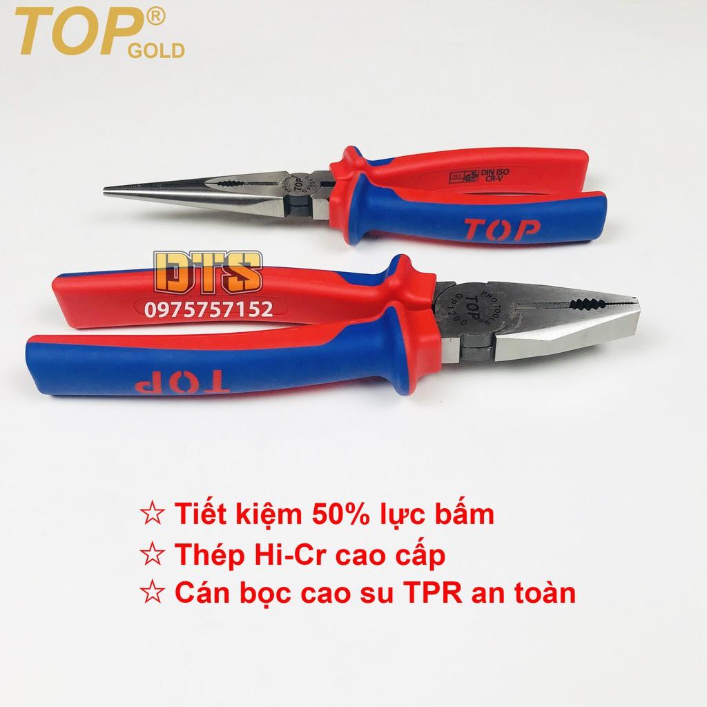 Bộ 2 kìm cắt - nhọn trợ lực chuyên nghiệp TOP GOLD 200mm, thép Hi-Cr cao cấp, tiết kiệm 50% lực bấm
